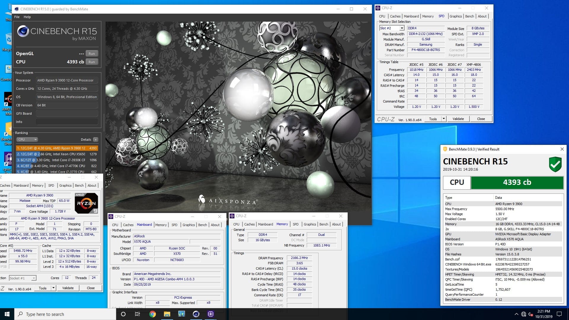 To get first place in the most popular discipline Cinebench R15, the enthusiast had to overclock the chip to a frequency of 5498.7 MHz, which eventually brought 4393 points.